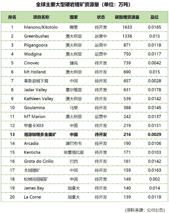 据公告称,湘源锂多金属矿拥有资源储量氧化锂87.4万吨,折合216万吨碳酸锂当量。