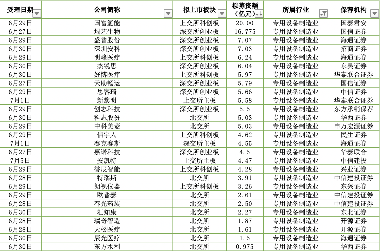 从拟募资额来看,国富氢能摘得头衔,垠艺生物次之,其余25家公司均在10亿元以下。