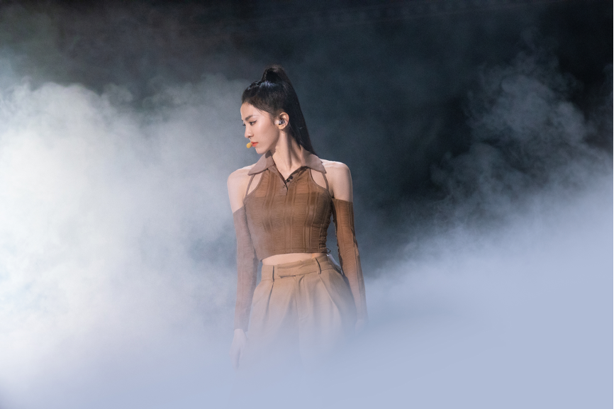 从小她的人生动力是“不满足”,心无旁骛,冲向某个城市的舞台,冲向某个“更好”的节点,而当下的动力变成了兴致勃勃,四处张望。看见一个新鲜的东西,她恨不得立刻把自己变成那个东西,就像从前在《春江花月夜》的剧场里把自己变成“春”,变成一股催开花朵的新风。在综艺里,她仍然以古典舞的形象出现在初舞台上,然而,再次露面,一首《雾里》便勇敢地展现了不同的面相,正如她第一次为自己写的 rap 词: