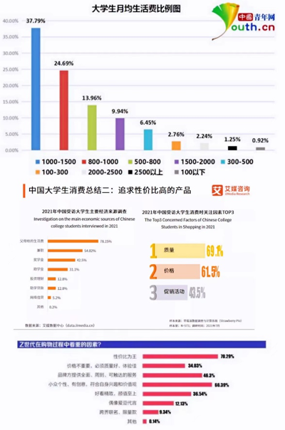 总的来说,现在大学生群体主要以00后居多,处于z时代的他们对待消费有着更加理智化、利己化的倾向性。内容全渠道管理、网生一代的特性、消费圈层化以及新锐消费观在时代的不断推动下逐渐出圈,无可否认的是大学生群体的消费“力量”的存在,但同时,各种营销方式的制定还仍需要考虑到这一特殊群体的存在性。