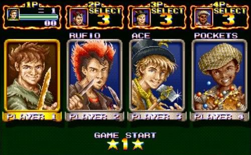 《铁钩船长》是90年代初的可以四人同时进行的经典动作游戏!共有五个角色可选,老大彼得潘、老二双刀、老三企鹅小子、老四娃娃和老五胖子,其中数老大、老 四、老五较为厉害一些,另两个攻击力太差,单打通关不易,而用其它三人均可轻易通关。