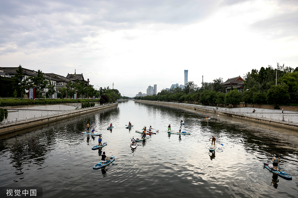 随着气温升高,北京的亮马河、昆玉河、通惠河、朝阳公园等公开水域,迎来了一大批“水上漂”的年轻人。