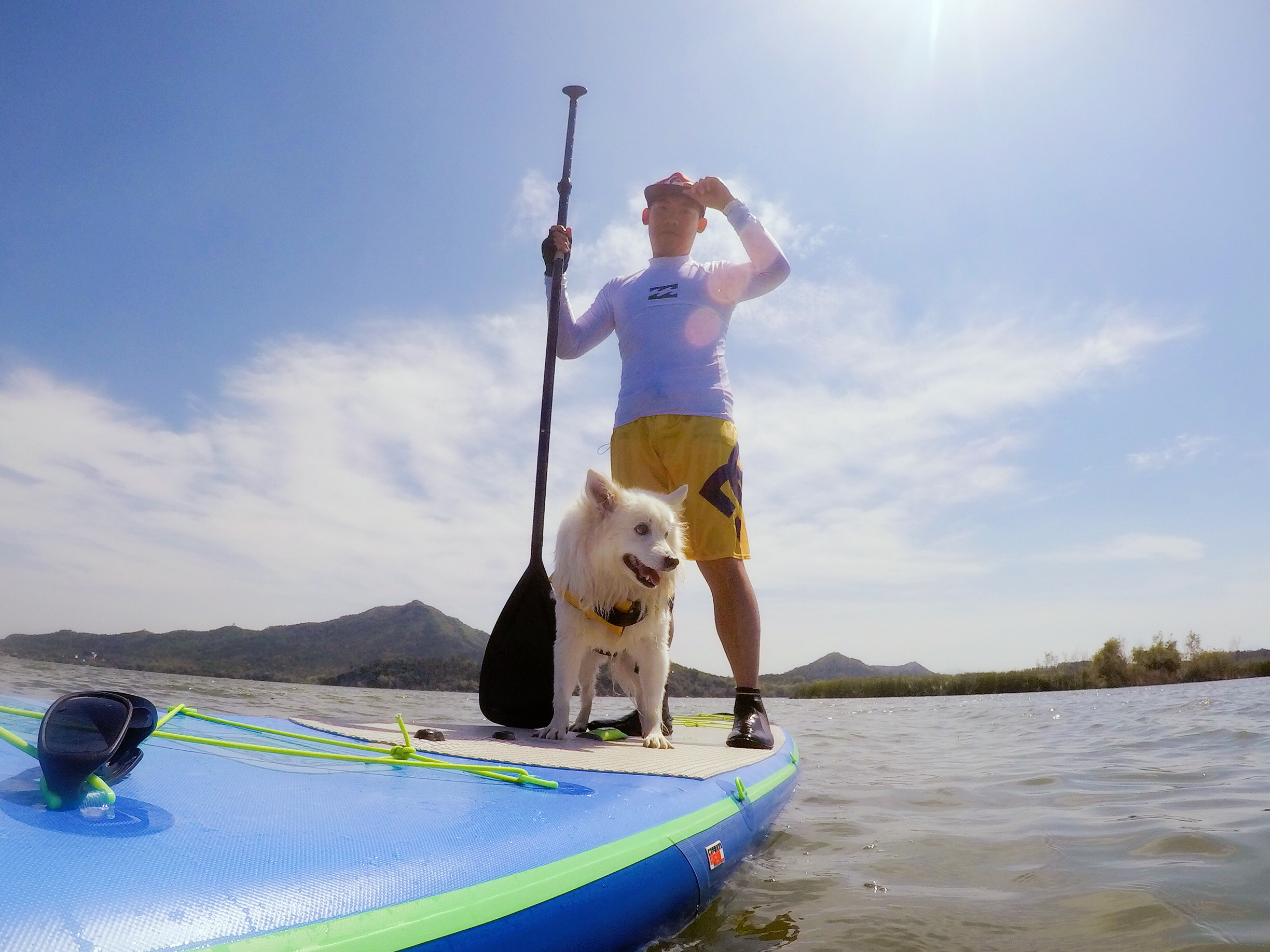 Liana Chai组织的桨板活动,甚至还有6个人带5只狗的“狗狗局”。从安全性的角度来说,桨板对于承载一个成年人加宠物的稳定性足够,加上狗会游泳,只要给它穿好救生衣就没有问题。