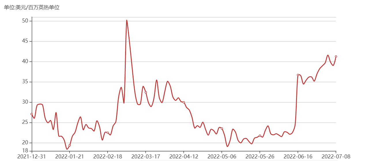 Tom Marzec-Manser称,“北溪一号”的维护计划已将欧洲天然气价格推至俄乌冲突爆发以来的最高水平。截至7月8日,ICIS对荷兰TTF天然气基准价的评估价格为167欧元/兆瓦时(约合人民币11.3元/立方米),是一个月前的两倍。