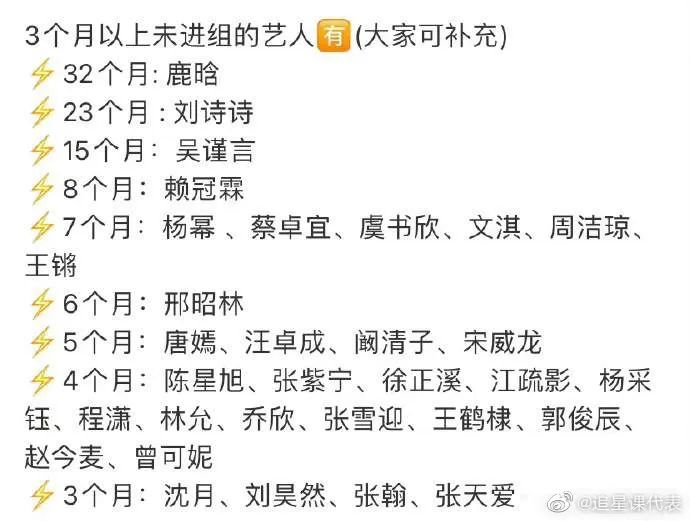 火箭少女101毕业的徐梦洁、硬糖少女303毕业的刘些宁,算是首批降得下来咖位,去演微短剧的限定团爱豆。降不下来的,就只能长期空窗了。网友总结的3个月以上未进组艺人,包含很多头部艺人,更不用说现在整体热度下降的糊糊爱豆。