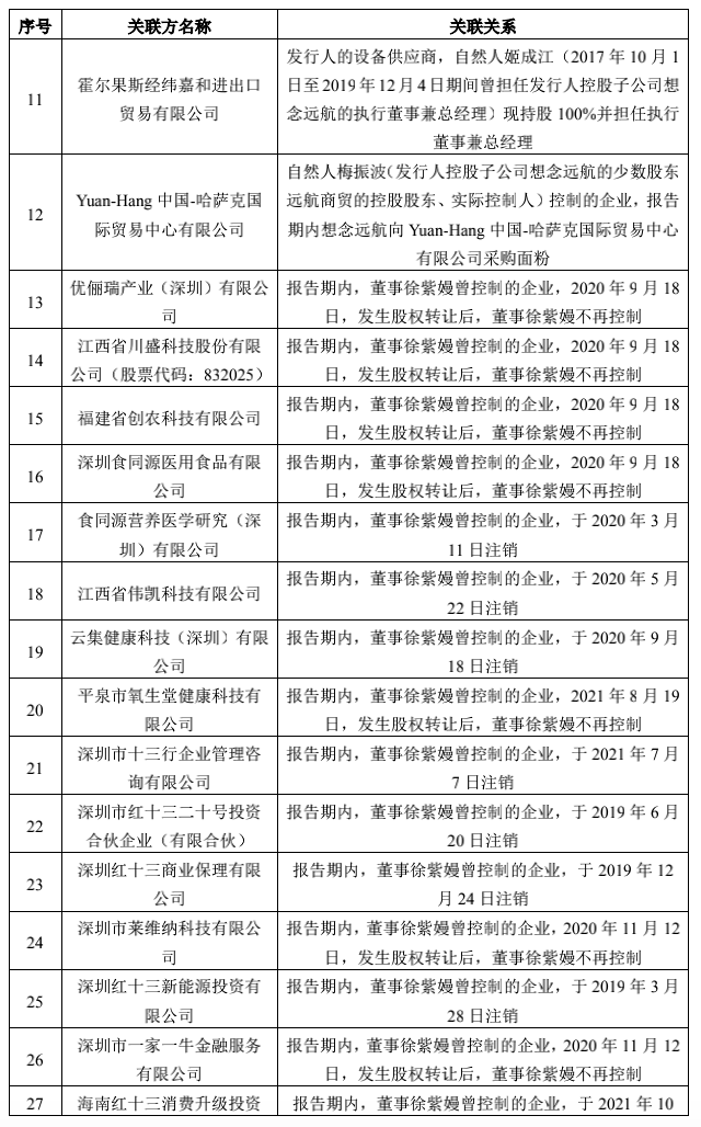 在184页,想念食品还披露了报告期内曾经的关联方,共有51家。