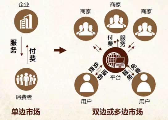 原来的市场是单边市场,就是交易。但是现在必须是双边或者多边市场。这就产生了平台。