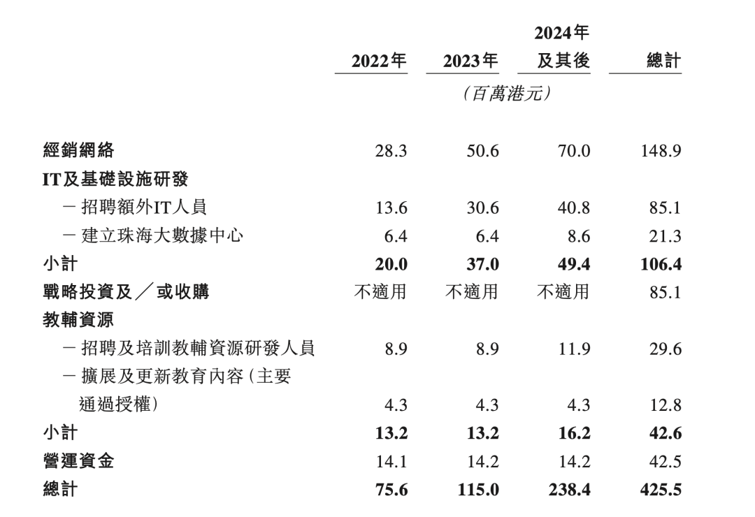 招股书显示,本次IPO共募集3.65亿港元(折合约3.12亿人民币),将主要用于经销网络扩张和战略投资及收购教辅资源。