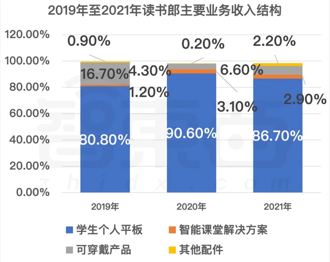 除此以外,读书郎还在开发与智能学习设备相容的配件,如智能点读笔和智能扫读笔,不过这些配件仍处于发展初期,2019年至2021年,其营收分别为600万元、210万元、1790万元,占总收入的约0.9%、0.2%、2.2%。