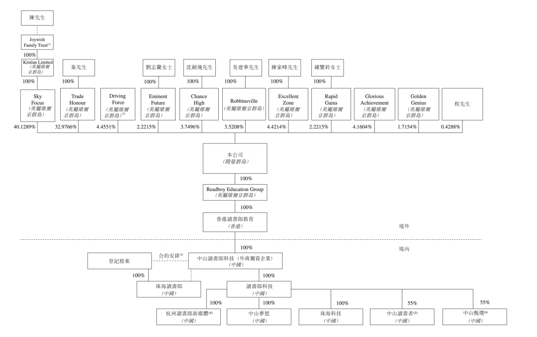 在教育行业中,读书郎也形成了以生产及销售AI学习设备、制作及销售数字化教辅资源的读书郎主要通过读书郎科技(主要子公司)及珠海读书郎(中国经营实体)展开业务,其分别负责生产及销售AI学习设备和制作及销售数字化教辅资源。