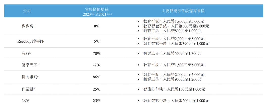 与智能学习设备市场的其他主要企业相比,2020年至2021年读书郎零售价值增长率达到5%。