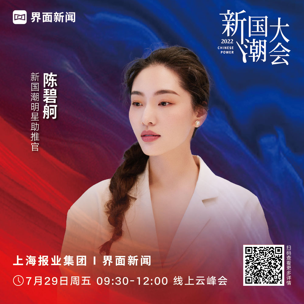 基于此,由上海报业集团|界面新闻主办的2022年【新国潮大会】将以“云峰会”形式,7月29日进行公开直播。全新新国潮明星助推官正式官宣——陈碧舸,邀您共同探讨国潮品牌增长力,聚焦中国元素在新消费潮流中的多样可能。