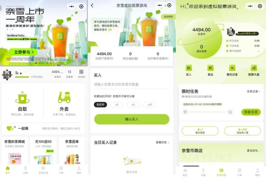 在股价持续低迷、公司运营遭遇质疑的情况下,奈雪的茶在营销方面却很是有创意。据悉,奈雪的茶在6月30日正式上线“虚拟股票游戏入口”,原本的会员积分也升级成“奈雪币”。