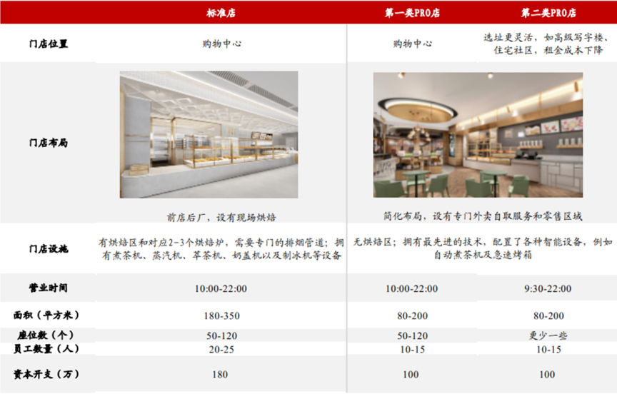 为了应对成本过高,奈雪的茶通过开设Pro店节约成本。具体而言,Pro店相当于标准店的简化版,占地面积更小、前期投入成本更低,容易进行复制扩张。并且,Pro店雇佣的员工数量明显少于标准店,可以节约一部分员工成本。