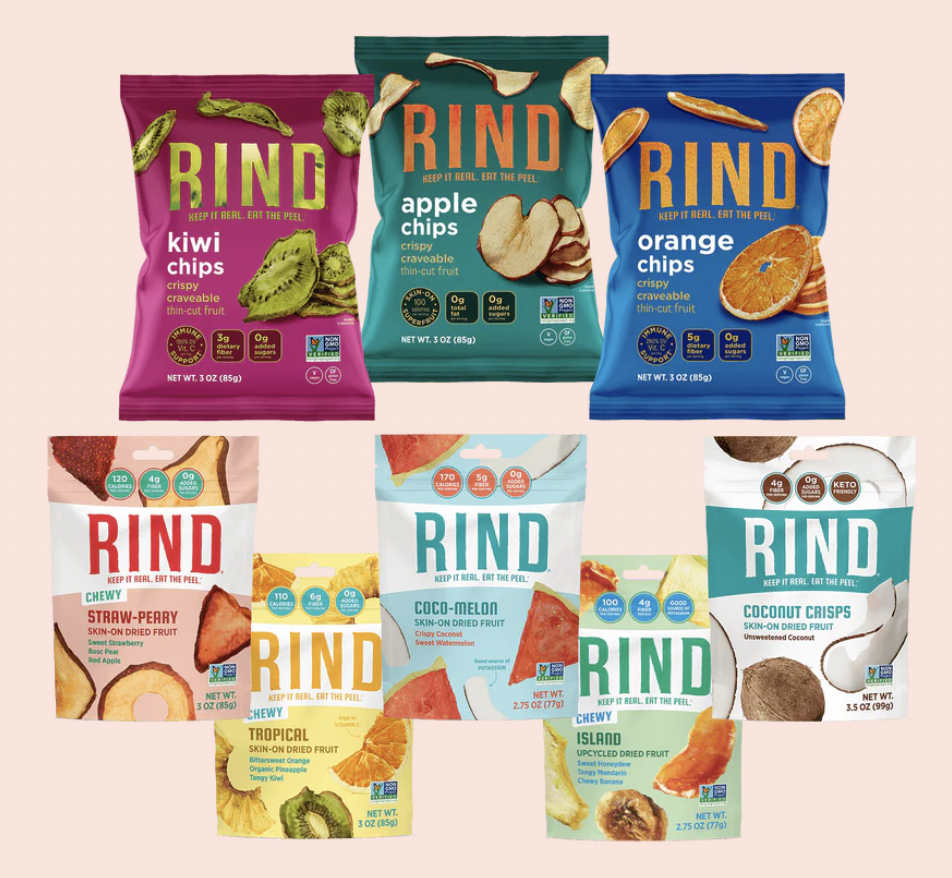 以不去除果皮,保留完整水果为亮点的创新水果零食品牌RIND,旨在通过保持果皮的真实性来打造“零浪费零食”的概念。其各种果干类产品中富含丰富的天然纤维、维生素和抗氧化剂,能够在最大程度的保存营养的同时也能达到保护地球的效果,其官网显示,仅在2021年,通过食用RIND零食已经帮助节约超过34万磅食物的浪费,而RIND2022年的目标是拯救100万磅食物。