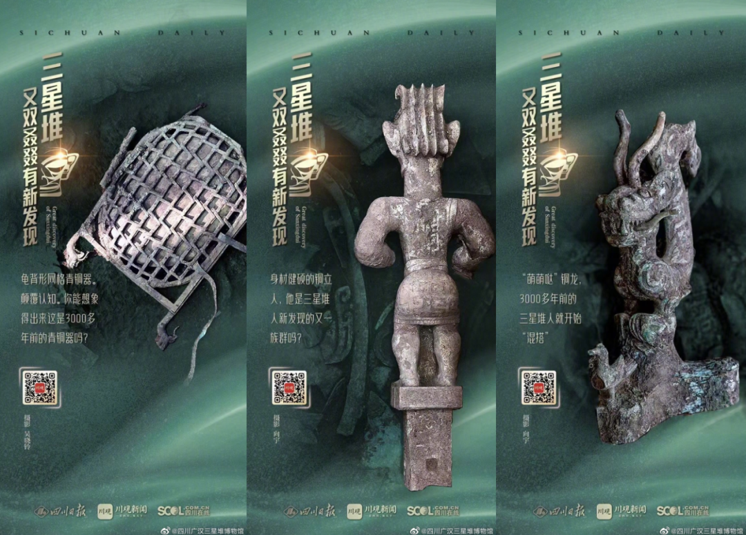今年6月13日,三星堆“盲盒”再一度上新,形似“机器狗”的铜神兽、状如“烧烤架”的龟背形网格状器、梳着“大背头”的铜立人像、又萌又拽的混搭版铜龙……这些新鲜出土的文物吸引了无数媒体的关注。