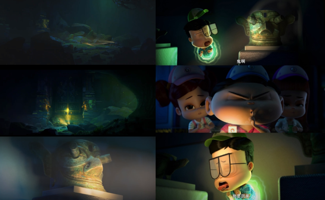 比如即将上映的动画电影《疯了!桂宝之三星夺宝》便讲述了桂宝和朋友们在四川三星堆开启穿越时空的探险之旅的故事。预告片中幽深而隐秘的洞穴、造型各异的青铜面具,都令人想到三星堆的山川灵气、古蜀祭祀和青铜瑰宝。