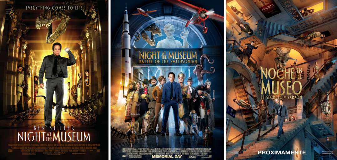 比如《博物馆奇妙夜》系列,一方面将博物馆中的馆藏打碎重组,时空交汇编织,雕塑、动物、器具、历史人物鲜活毕现,织造了一副奇幻有趣而底蕴丰富的生命画卷,展现了自然历史博物馆、史密森艺术博物馆、大英博物馆的博物之魅。