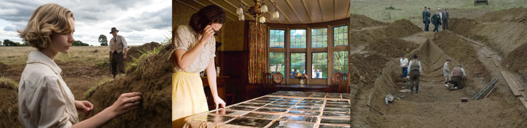 也有一些更贴合实际的尝试,比如2021年的考古题材传记电影《发掘》,便讲述了第二次世界大战即将爆发时,一位富有的寡妇雇用了一名业余考古学家在她的庄园内挖掘墓冢,却意外地揭开了对英国历史都有着极为特殊意义的一次发掘——萨顿胡遗址。