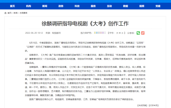 电视剧《大考》则讲述2020年疫情之下高考生们的故事,由郭京飞、胡先煦、李希庚主演,执导过《流金岁月》《我的前半生》等作品的导演沈严执导。据悉,该剧还是广电总局直接出题的为迎接党的二十大重点项目。
