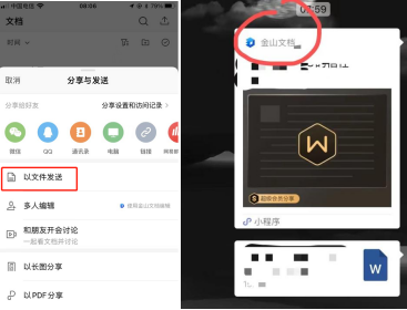 且当以在线小程序或者网页分享时,会看到这时候使用的是“金山文档”的服务。