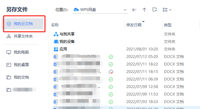 此外,在使用频率比较高的PC端,保存文档时,默认的位置是“我的云文档”。