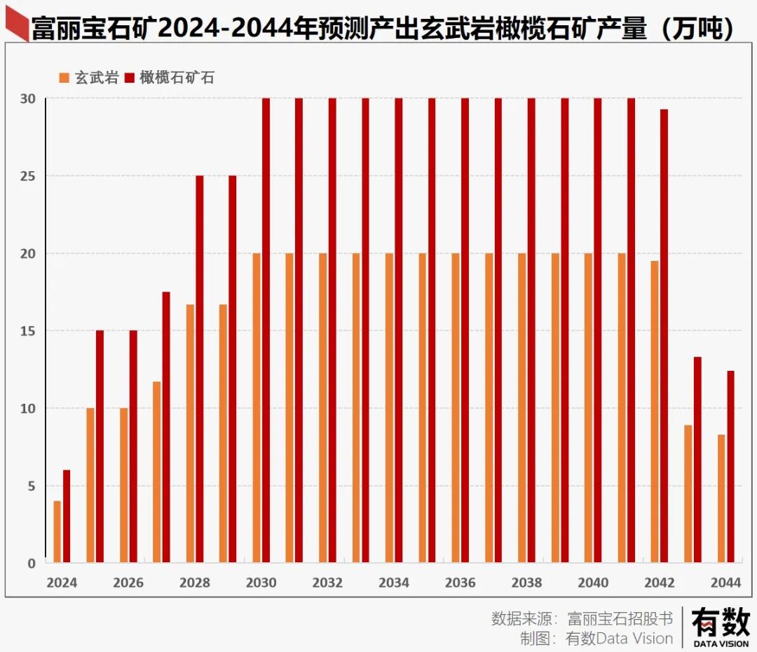 之后是产能爬坡期:2023年起,公司开始下矿。据估计,这一年橄榄石矿石产量可能仅有6万吨,到了2028年就可以攀升至25万吨。