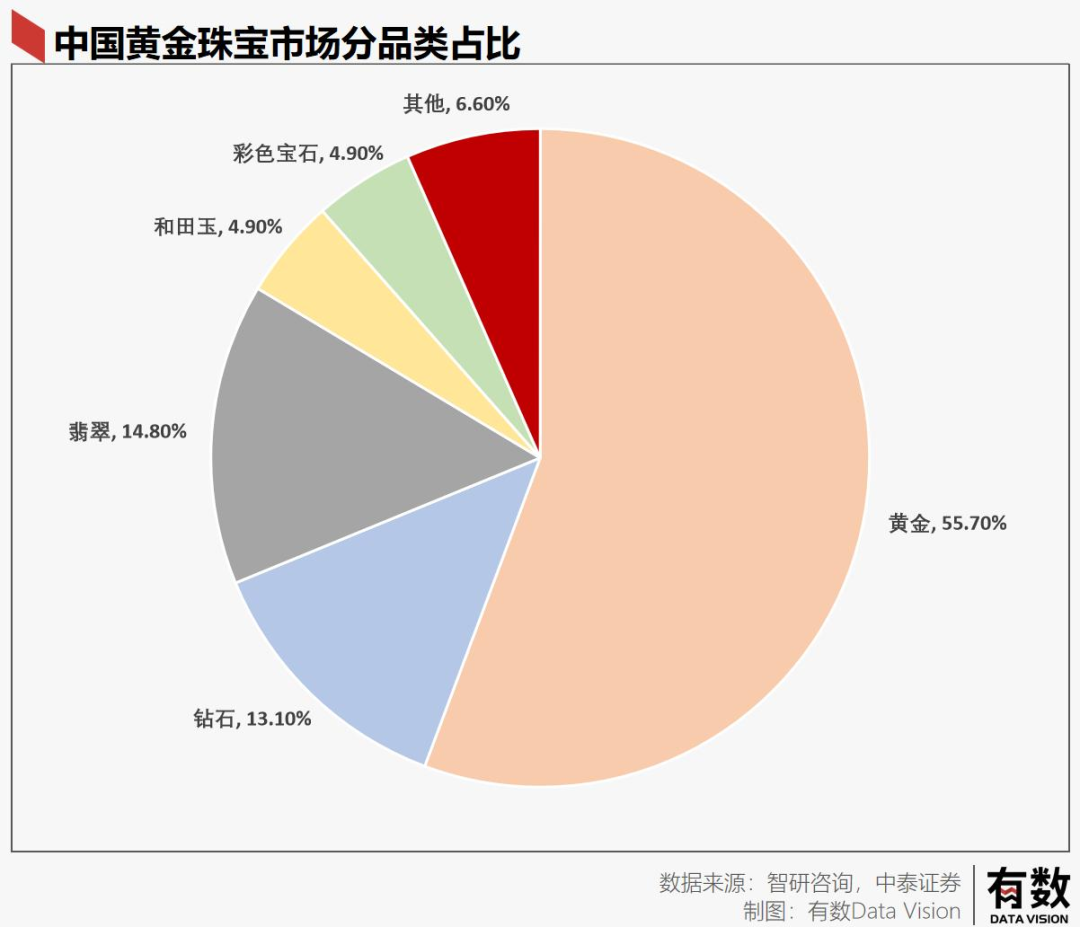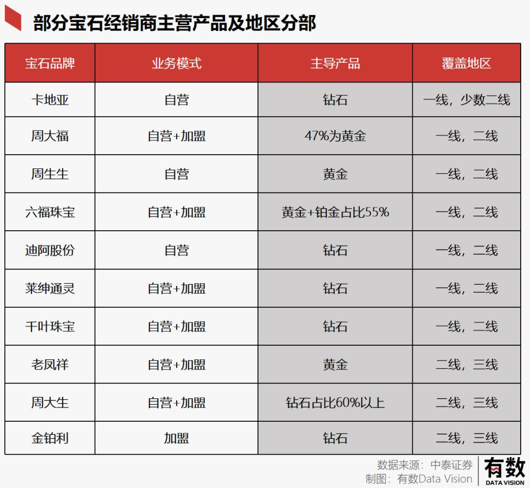 而从经销商角度来看,正如前文所说,边缘的彩色宝石因为价格波动大并不好卖。出于稳健的考虑,国内主要的经销商经营还是以黄金钻石为主要珠宝品种。