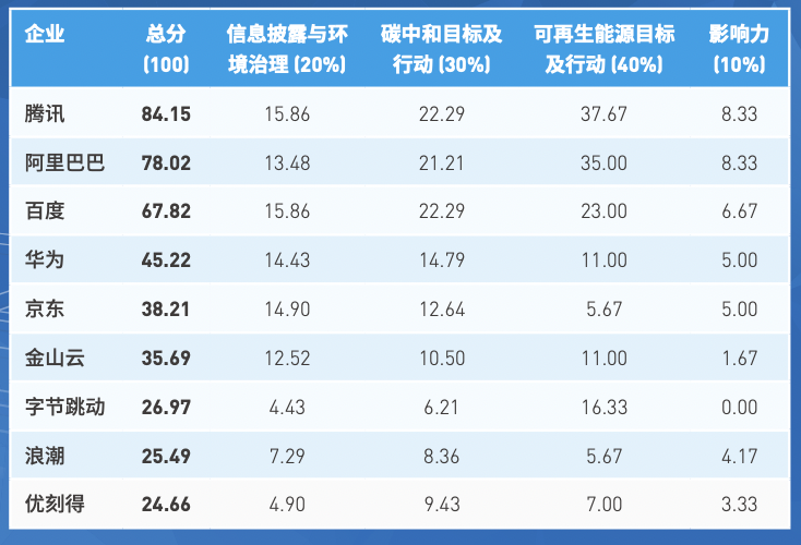 此外,京东、字节跳动尚未公开承诺2030年100%可再生能源目标。