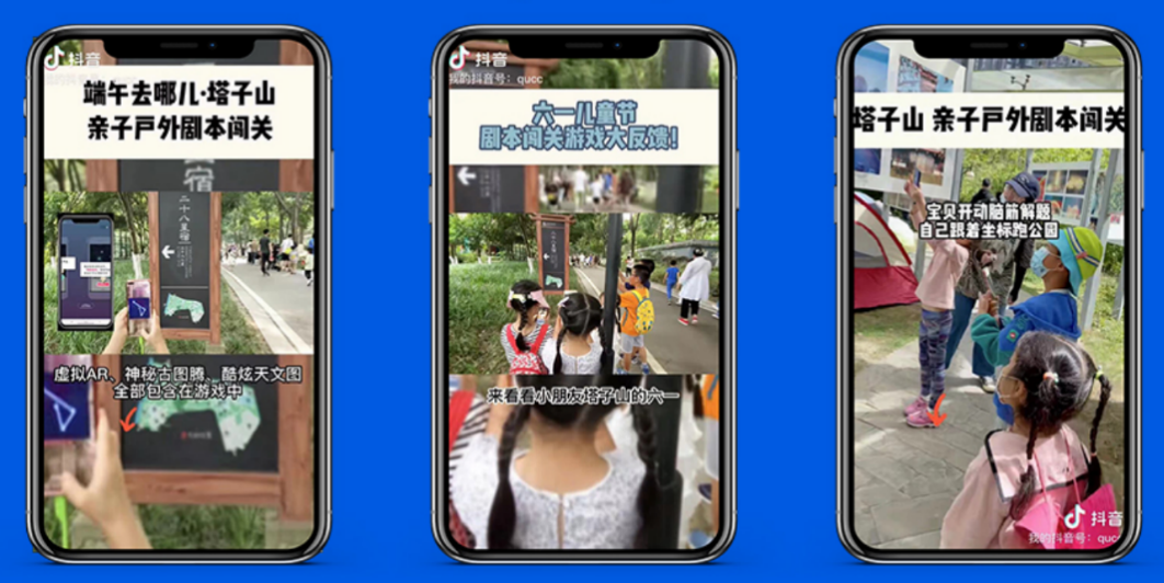 在成都经营着一家户外剧本杀的Yuri,目前主要运营着一套在公园内用手机接取任务的户外剧本杀。据Yuri介绍,任务布满成都塔子山公园的各个角落,任务点位之间会用到游戏罗盘指引方向,挑战会结合实景衍生出各种玩法。“精彩剧情+AR互动+侦探烧脑+研学融入等模式,适合6至12岁的小朋友。”