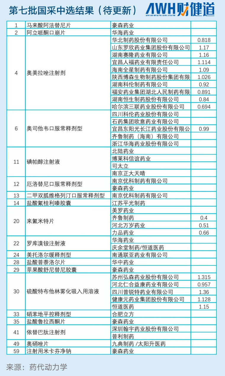 本次国采中过评数高的企业还包括扬子江药业、科伦药业、石药集团(1093HK)、中国生物制药(1177HK)、成都倍特药业等,可参与超过10个通用名的集采;上海医药、国药集团、华北制药、江苏豪森、恒瑞医药、辉瑞制药、诺华制药等,可参与5个及以上通用名的集采。
