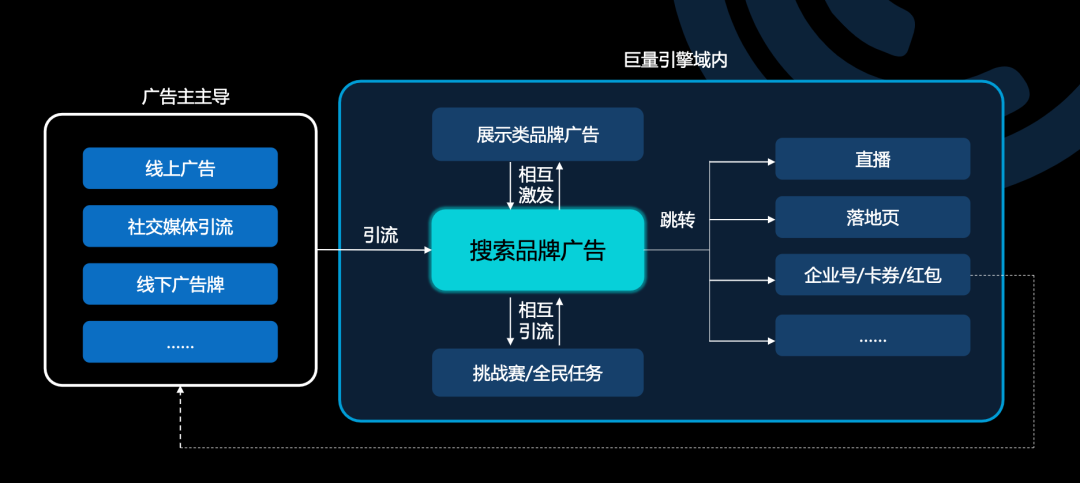 一方面是在主APP中将搜索广告与其他广告链接,把搜索纳入自己的生态,为品牌商家提供更全面的营销服务,从而构建从营到销的完整商业闭环。