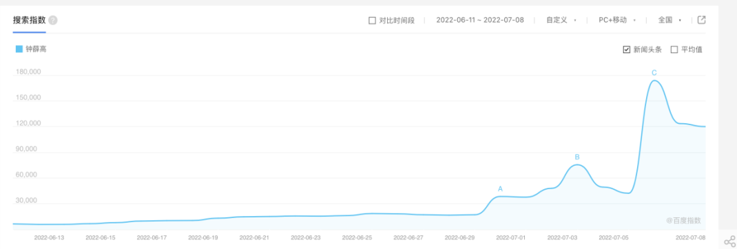 结合百度搜索大数据来看,网络上对钟薛高讨论热度的高点主要集中在7月1日至7月7日期间。