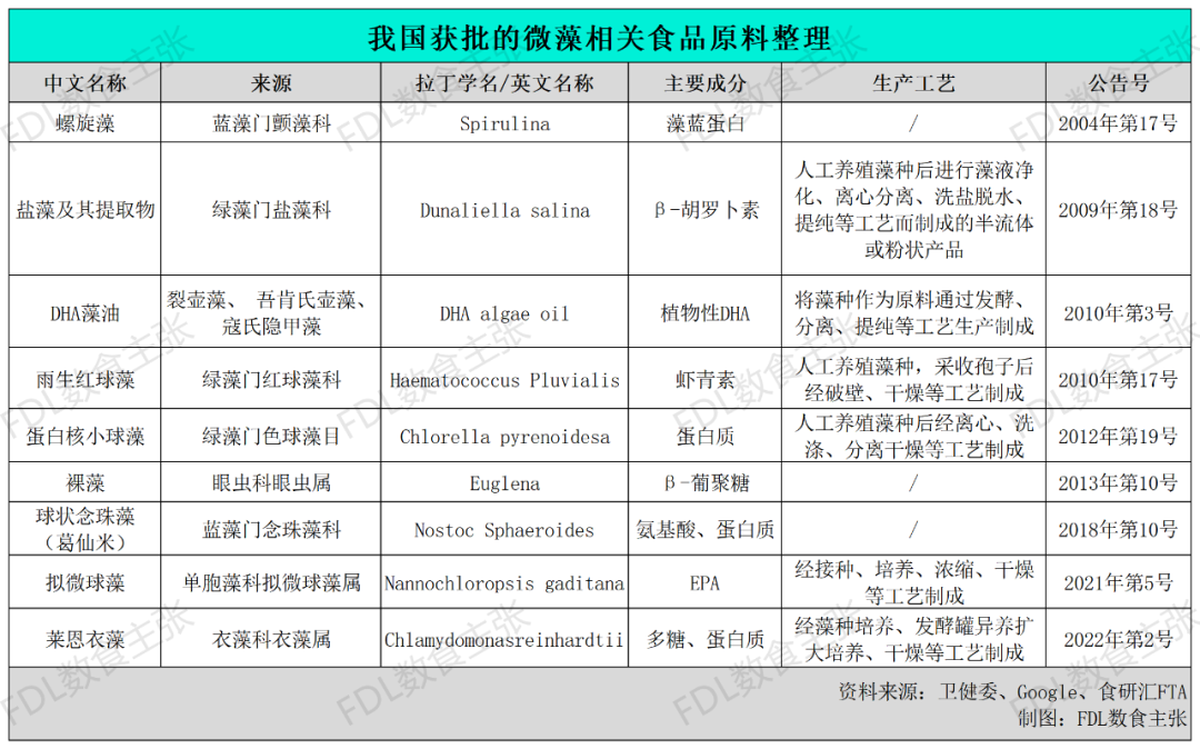 而在国内,自2004年螺旋藻被批准为普通食品原料以来,截至2022年5月共有9种微藻(包括微藻制品)获批为普通食品原料或新食品原料。