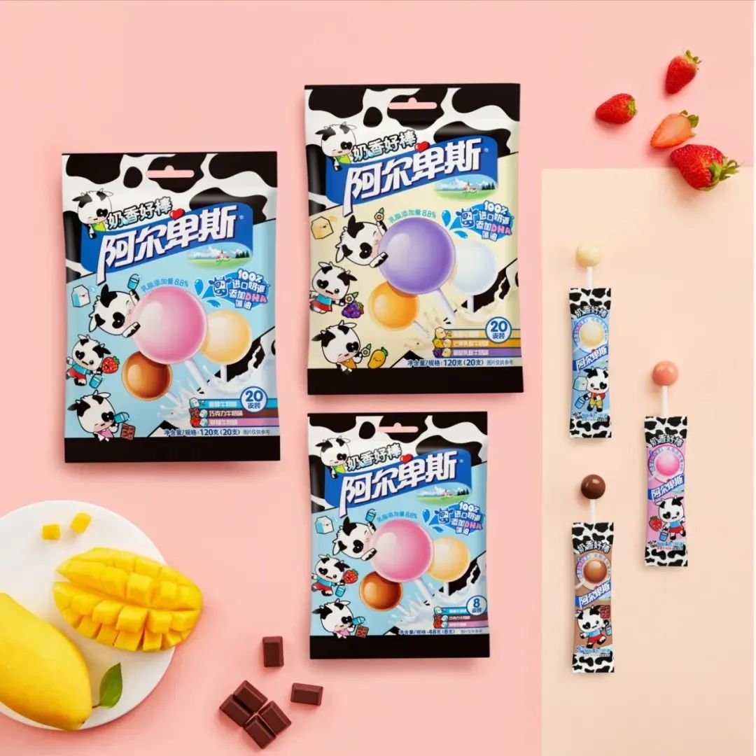 阿尔卑斯创新性推出一款添加了DHA藻油的棒棒糖。为迎合当下消费者对美味和健康日益提升的需求,该产品在原有的经典奶香口味基础上进行升级,不仅添加了DHA藻油作为营养成分,同时选用100%进口奶源,提高乳脂含量至8.8%。