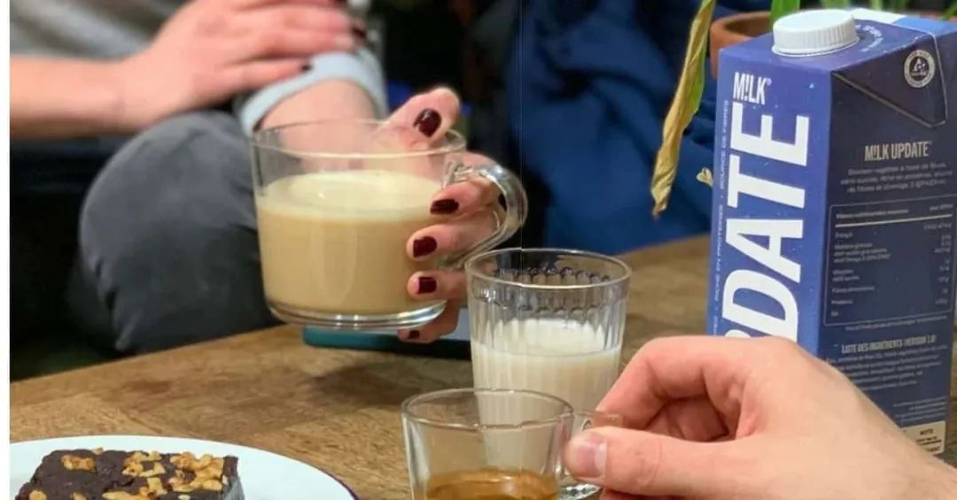 法国植物奶初创公司Update Foods研发出的一款全新植物奶M!lk Update。据介绍,这款产品主要含有来自蚕豆、小球藻的蛋白质,天然香料和少量乳化剂,其味道、质地和外观都和牛奶非常相似。