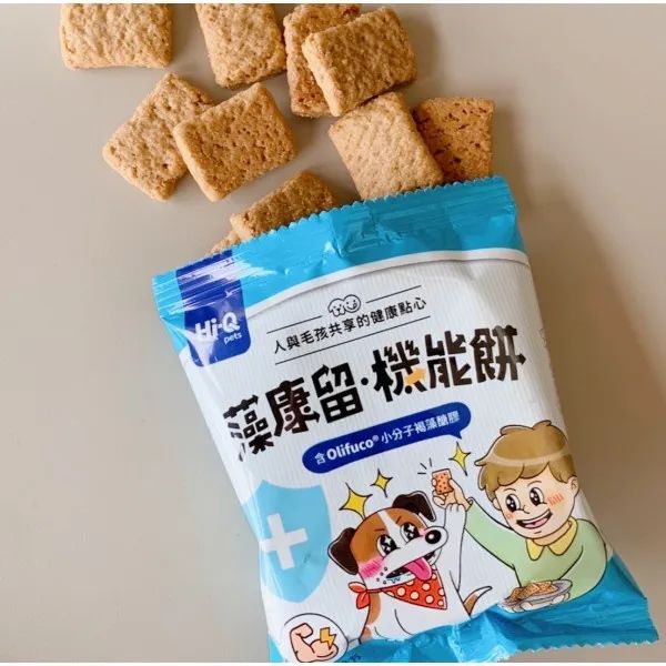 Hi-Q Pets推出的一款宠物零食:藻康留机能饼,旨在为消费者提供一款”人与毛孩共享的健康点心“。据悉,该产品是100%以人食等级的食材制作,不含防腐剂、化学成分,特别添加了提取自深海褐藻的Olifuco小分子褐藻醣胶,经国内外科学研究证实可有效强化宠物的生理机能。同时产品还加入了Omega-3鱼油、葡萄糖胺和益生菌,全方位为宠物补给营养。目前,该产品已获得全球检测平台SGS安全认证。