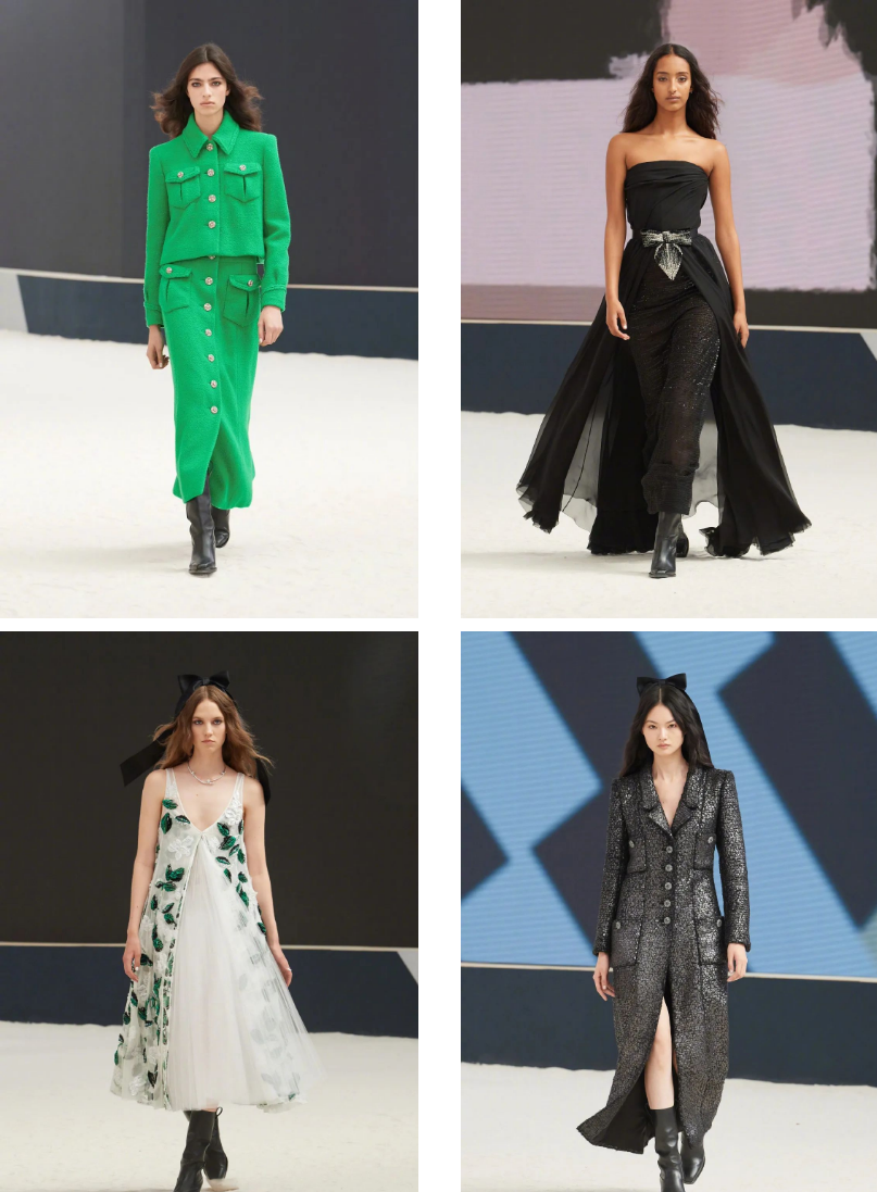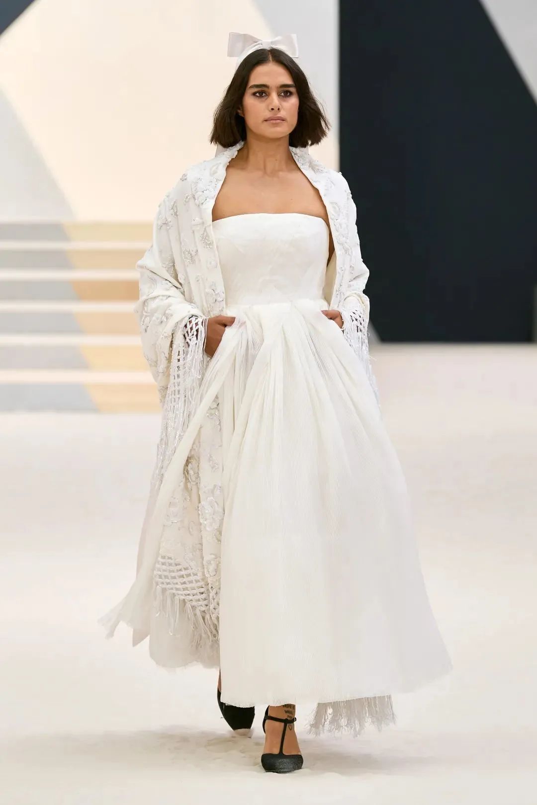 Chanel本季的高定系列在Étrier de Paris马术中心发布。本季作为上一季「马术世界」的延伸系列,创意总监Virginie Viard将各种蕾丝元素通过镶嵌、再加工以重新上色,取代了以往刺绣的形式呈现。