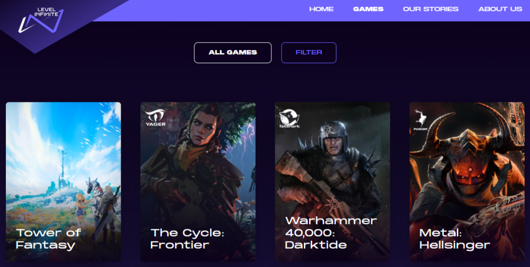而在Level Infinite英文官网的游戏列表页,《幻塔》被放在了首行首位。就在两周左右之前,它的展示顺序还在第15位,处在列表第4行,淹没在一片3A级射击大作之中。