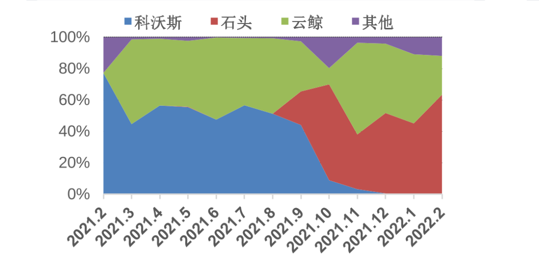 不过值得注意的是,相比初代云鲸J1的爆发力,云鲸J2的产品市场竞争力明显下滑,表现在上图中就是2021.9月之后的绿色区域小于之前。