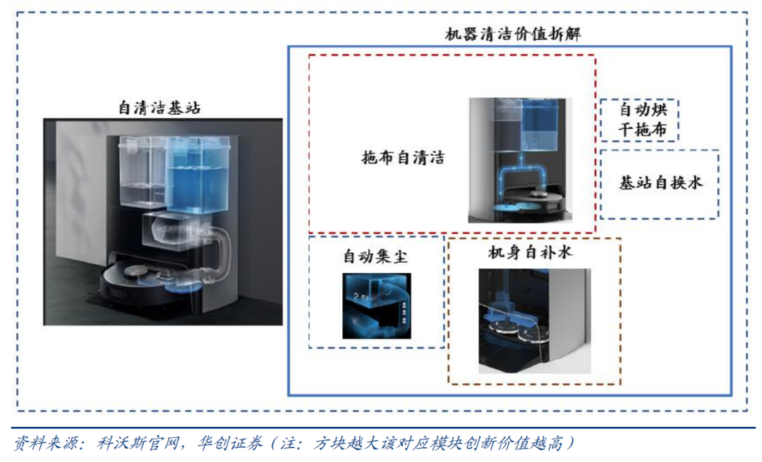 其根本原因在于随着最痛点的拖布清洗劳动得以替代之后,其他自清洁模块所带来的劳动替代价值相较有限,创新效果边际减弱。