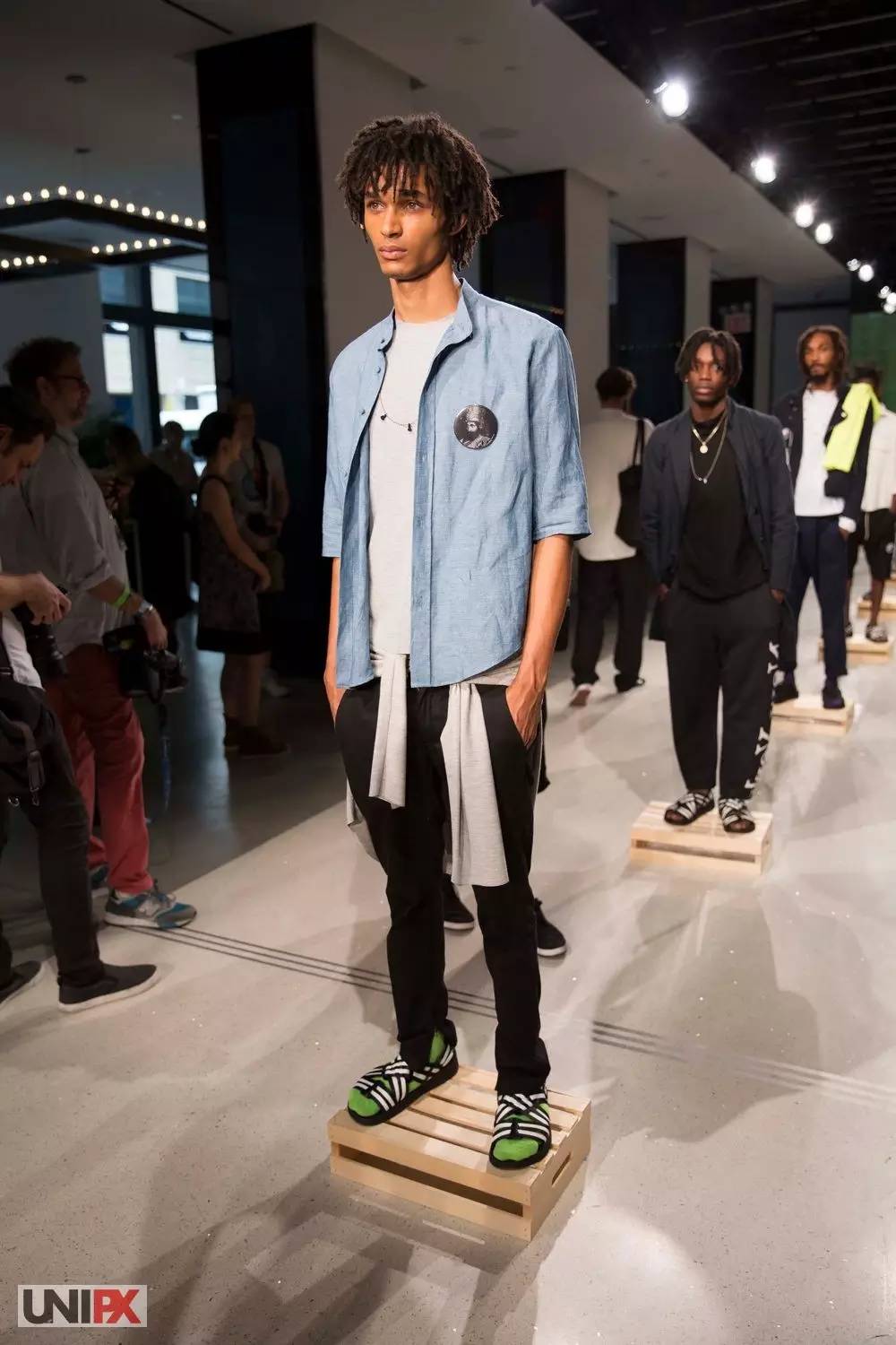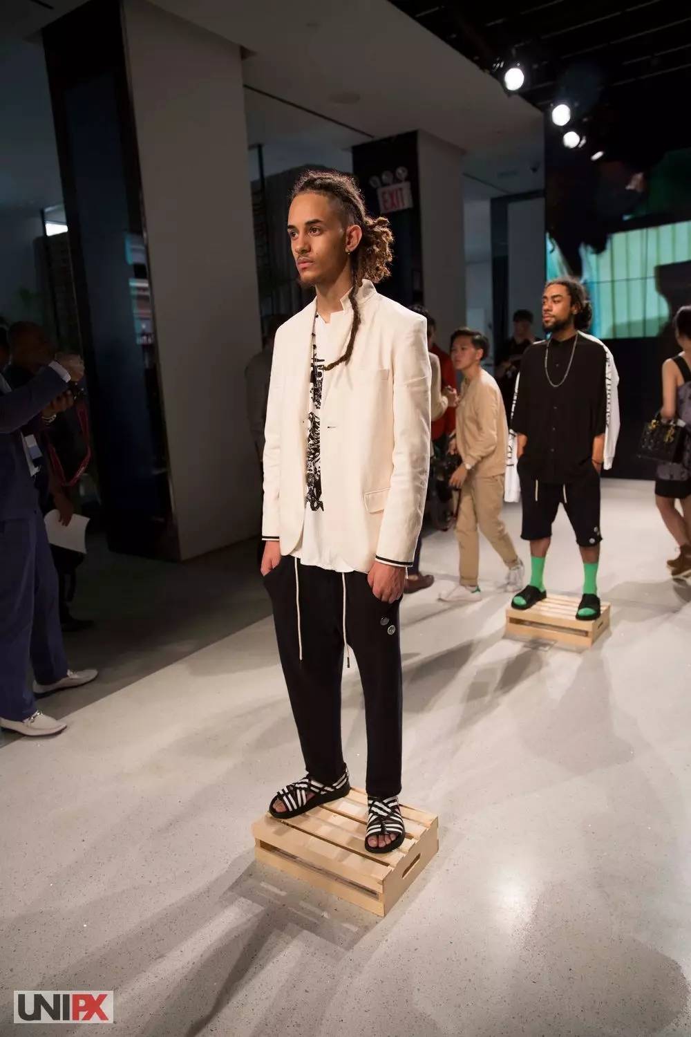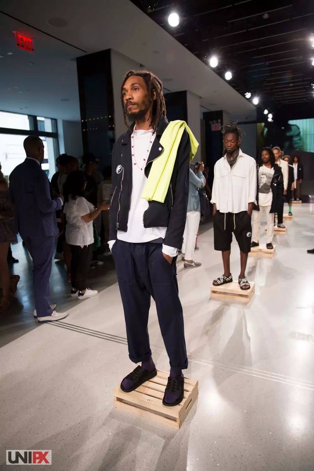 昏暗神秘的灯光,西印度群岛瑞格舞的Remix旋律,加上全员夸张的非洲发绺,凑成了Assembly New York 2017春夏最新一季的男装。