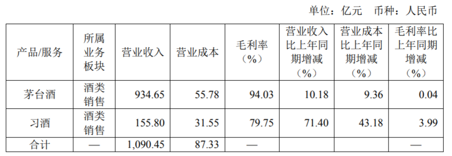 茅台集团最主要的销售贡献还是茅台酒,后者酒类销售营收934.65亿元,同比增10.18%;第二大品牌习酒营收155.8亿元,同比增长71.4%。习酒的毛利率接近80%,虽然不如贵州茅台的茅台酒,但已经超过贵州茅台旗下的其他系列酒6个百分点以上。