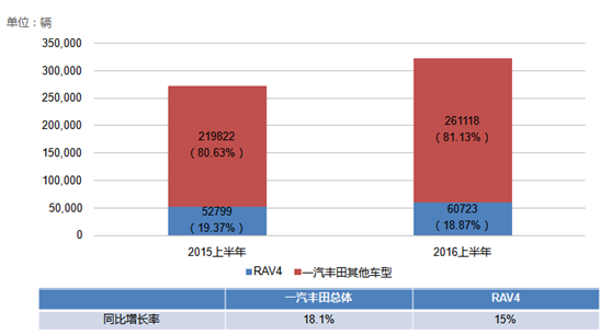 另外,在一汽丰田产品内部,以卡罗拉、威驰为代表的轿车仍然是销量主力军。2016年上半年,RAV4销量占比为18.87%,略低于去年同期的19.37%。RAV4荣放的推出,已经慢于其他国家市场,肩负的期许可见一斑。