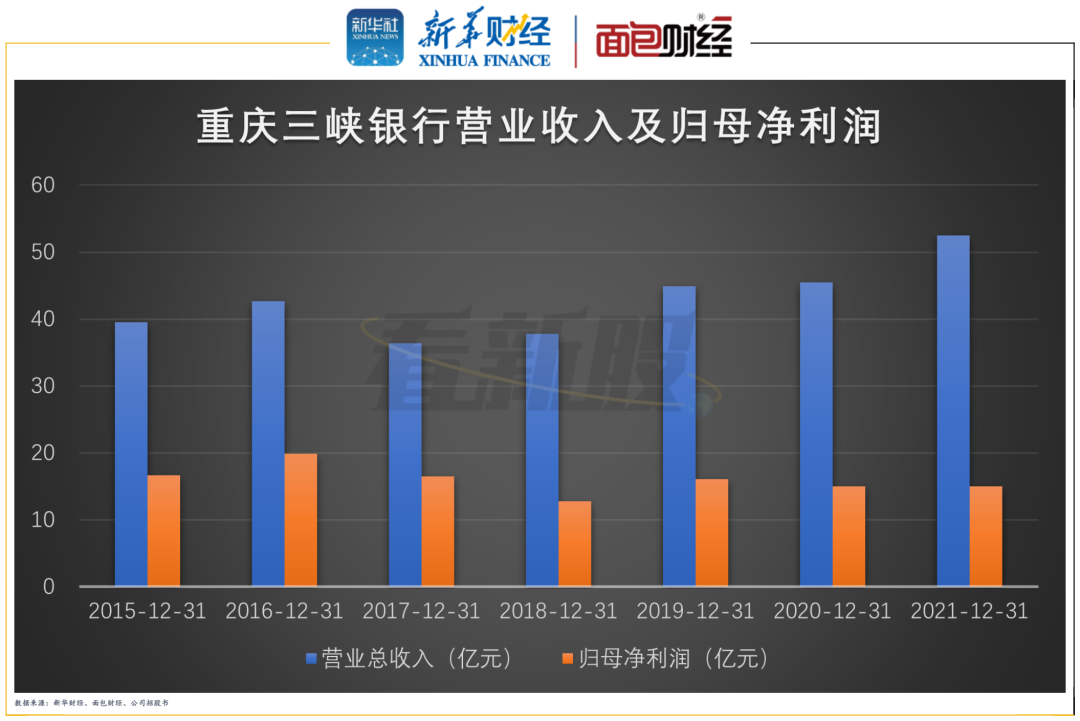 财报显示,2021年,重庆三峡银行实现营收52.47亿元,同比增长15.48%;实现归母净利润14.97亿元,同比下降0.41%。值得注意的是,该行归母净利润已连续两年出现负增长,2020年,该行实现归母净利润15.04亿元,较2019年下降6.34%。
