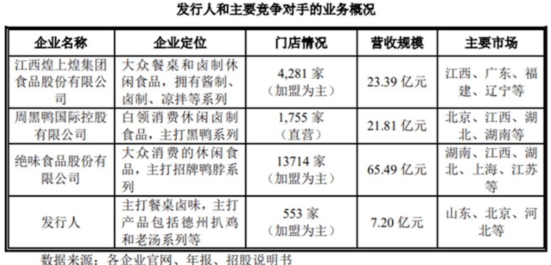另外,放置于行业中,对比同类卤味大公司们来说,德州扒鸡无论是营收规模还是门店数量都处在下风。