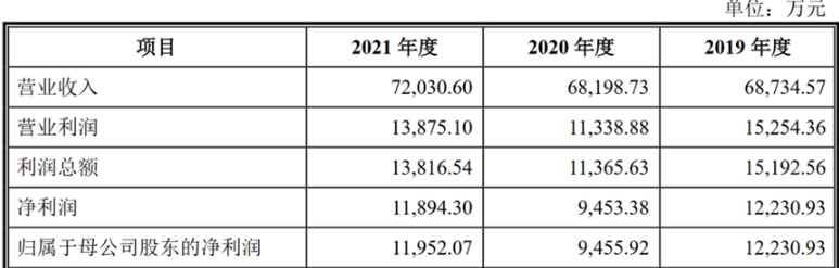 业绩方面,2019年-2021年,公司实现营收分别为6.87亿元、6.82亿元、7.2亿元,对应归母净利润分别为1.22亿元、9,455.92万元、1.2亿元。