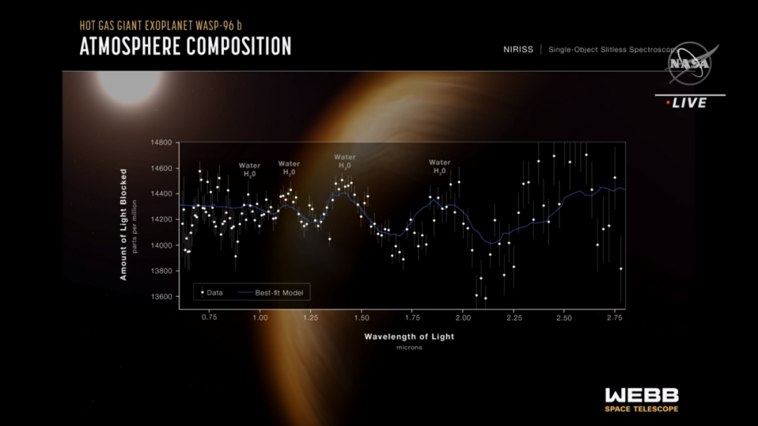 韦伯对太阳系外这颗又热又膨胀的行星进行了详细观察,揭示了WASP-96 b 大气中存在显著的水蒸气。