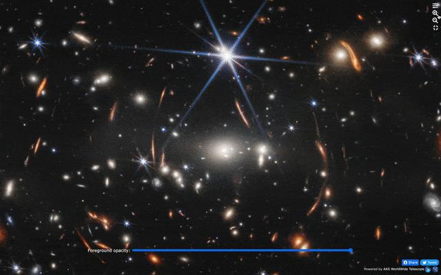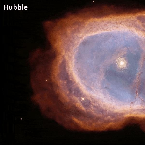 有网友将韦伯与哈勃所拍摄的图片做成了动图。相较之下,无论是从细节还是清晰度来说,都形成了更为直观的对比。