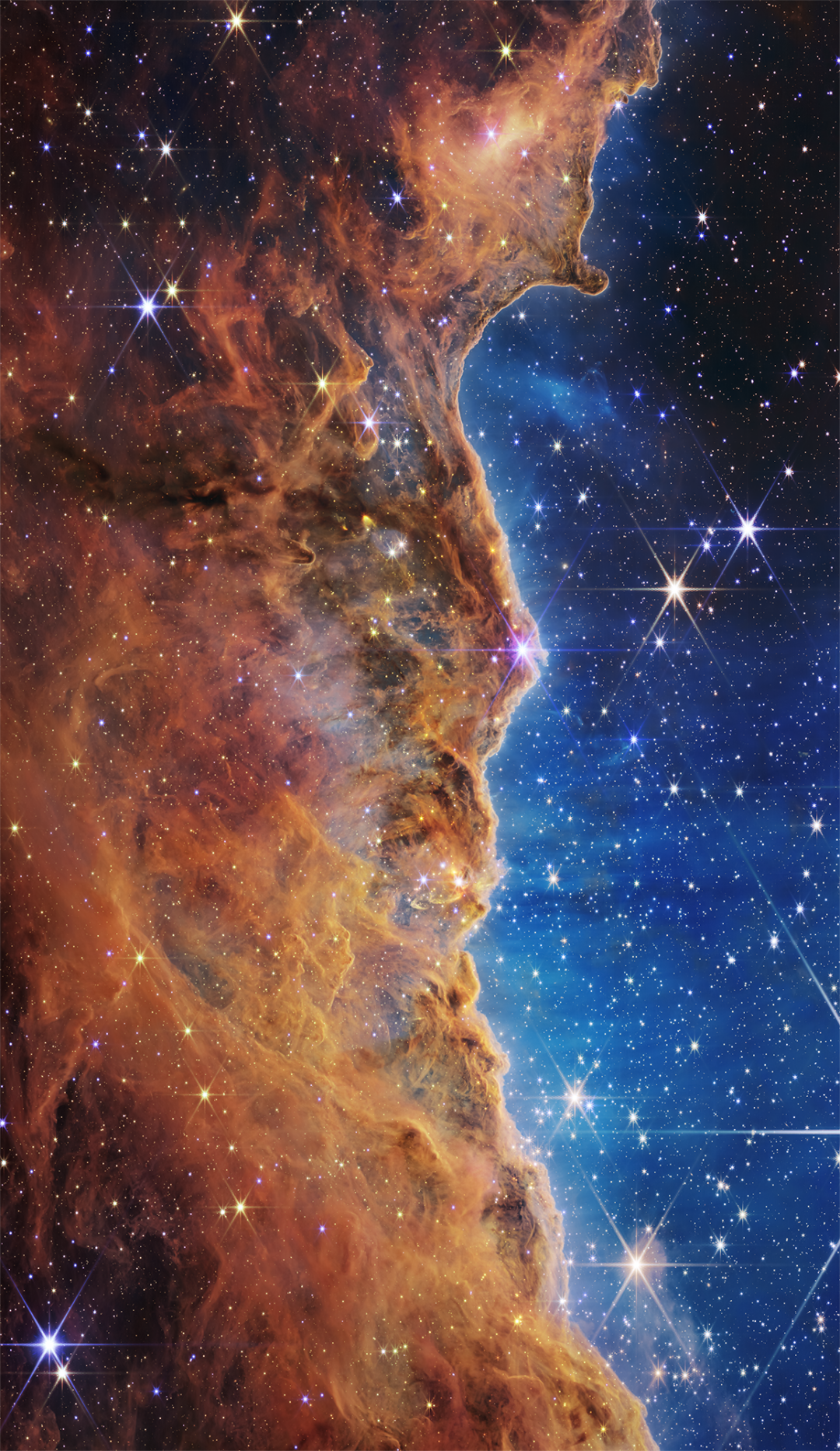 通过对船底座星云中“宇宙悬崖”的监测与观察,韦伯望远镜揭示了恒星的形成阶段。